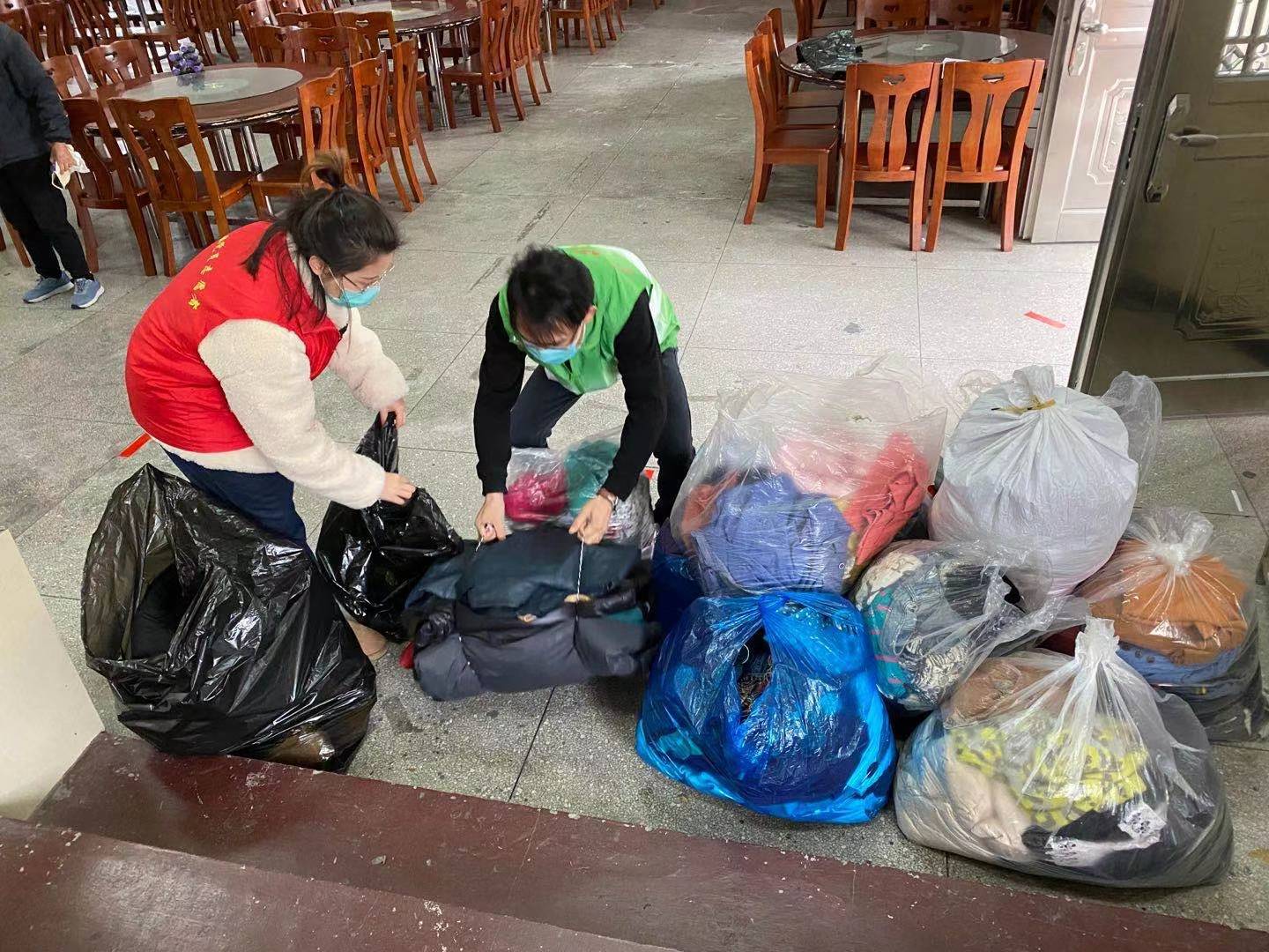 几天前,活动消息一发布,居民们热切响应,纷纷回到家中整理旧衣物,趁着晴好天气清洗、消毒、晾晒,然后打包好。3月5日,活动定于上午9时开始,8时45分就有居民来到捐赠点捐衣。仅仅半小时时间,捐赠点就陆陆续续迎来了25位捐衣居民,捐赠衣服达200公斤。