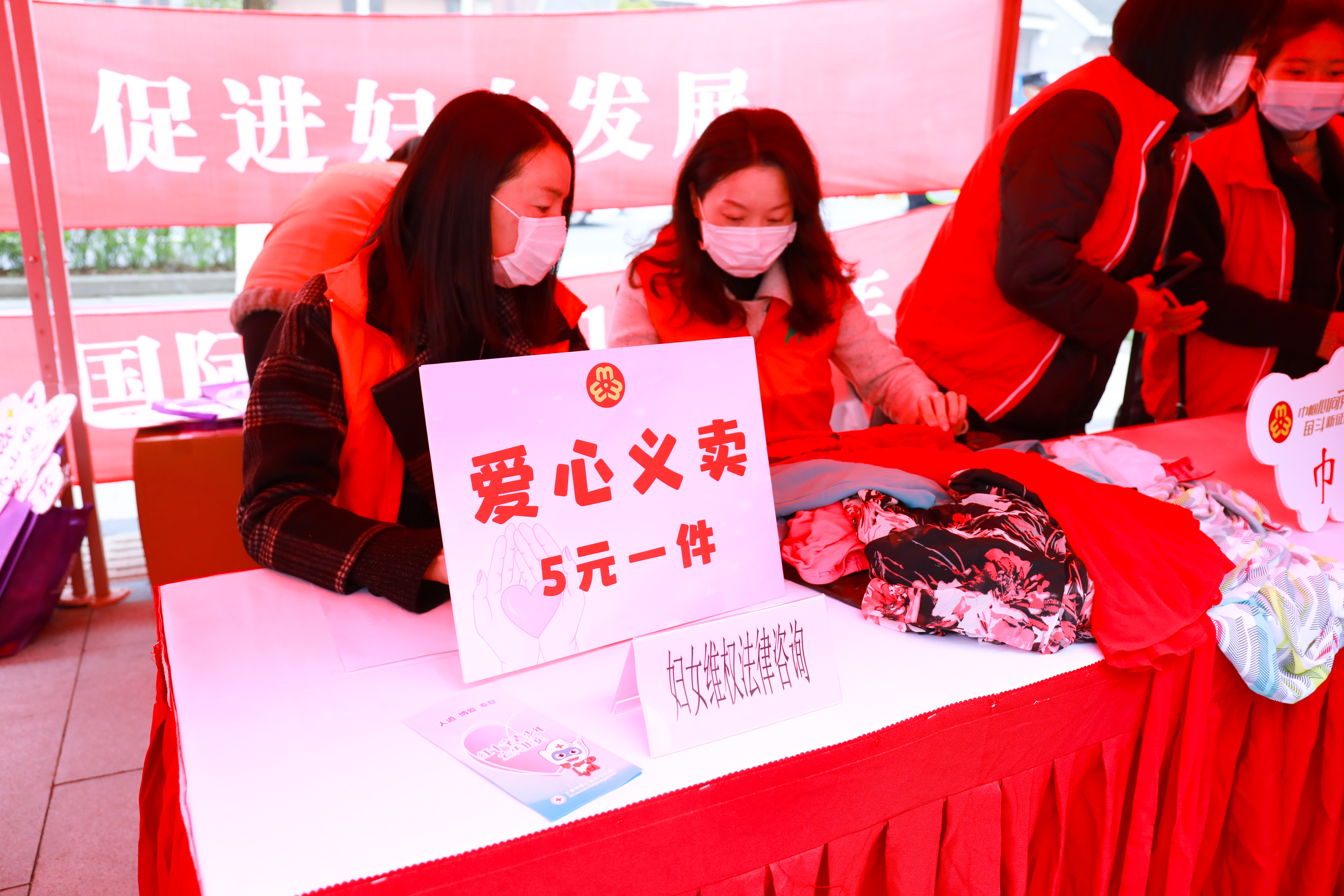 “三八”妇女节即将到来,小昆山妇联及志愿者也来到了现场,进行爱心义卖,并宣传妇女维权以及反家暴的内容。