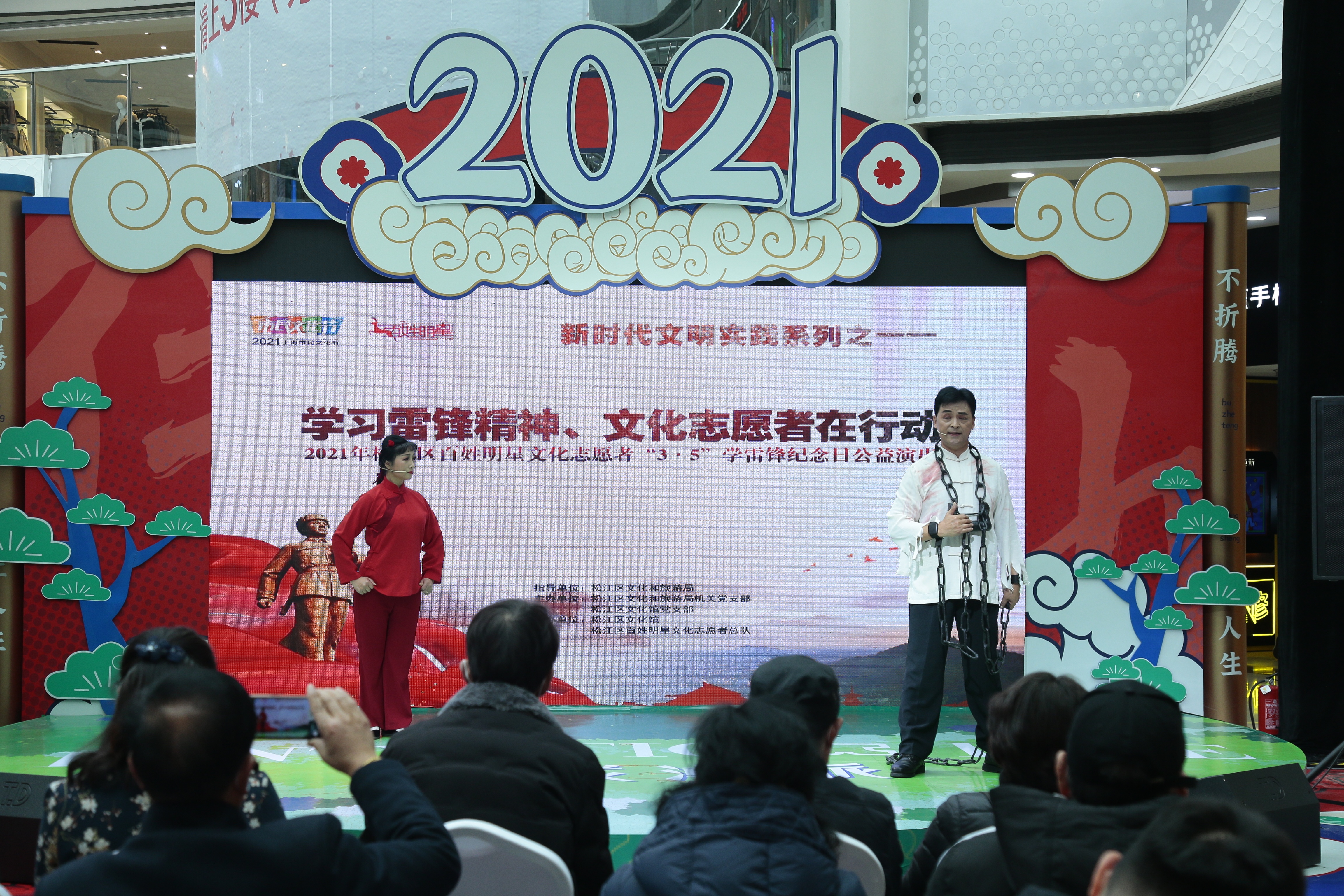 3月5日,区文化和旅游局机关党支部、区文化馆党支部主办,区文化馆、松江区百姓明星文化志愿者总队承办的“3∙5”学雷锋纪念日公益演出活动走进商圈,为市民朋友们送上了一场精彩的文化大餐。