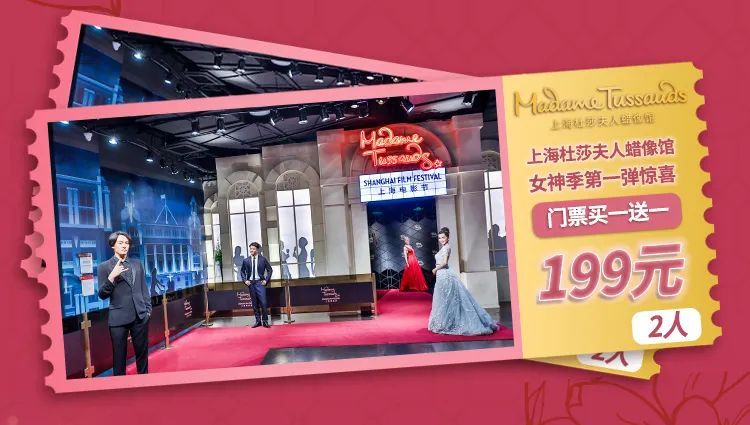 3月6日-3月8日,199元即可获取两张上海杜莎夫人蜡像馆门票,更有赠送节日限定电子相片和许愿卡!同行二人有一女神即可享受优惠价格!