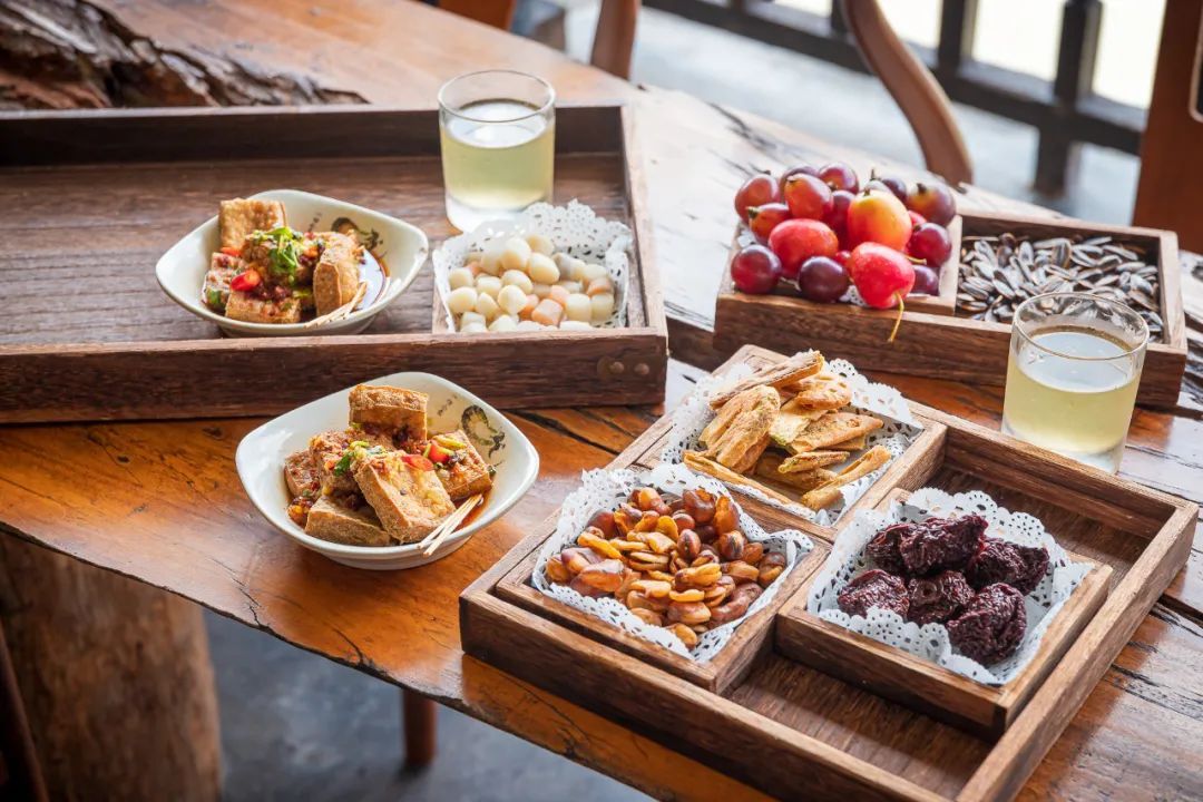 去“江南第一茶楼”吃一回当地特有的千岁早茶,才算不枉此行。当地人早起饮茶的习惯早已有之,看一看水乡的日出景致。临湖而坐,听“老爸爸们”讲述朱家角的过往趣事,一个上午便过去了。