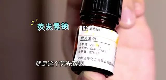荧光素钠,固态情况下是橘黄色,溶于水之后,只要拿紫外线一照,就会发出黄绿色的光芒。