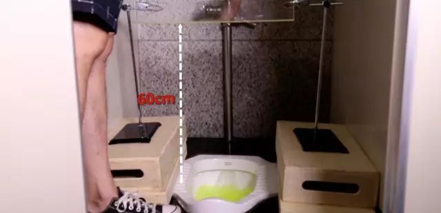 在马桶和蹲坑正上方安置一块透明玻璃板,量了下距离,马桶和蹲坑到玻璃板的距离是一样的,看看气旋在这个高度有多强烈。