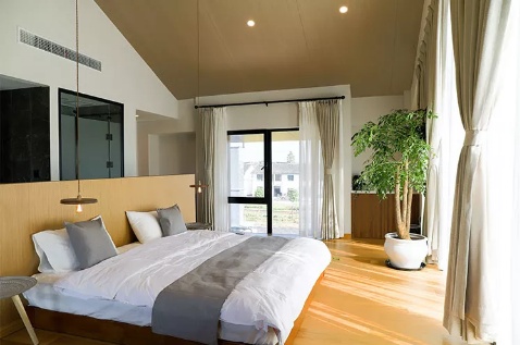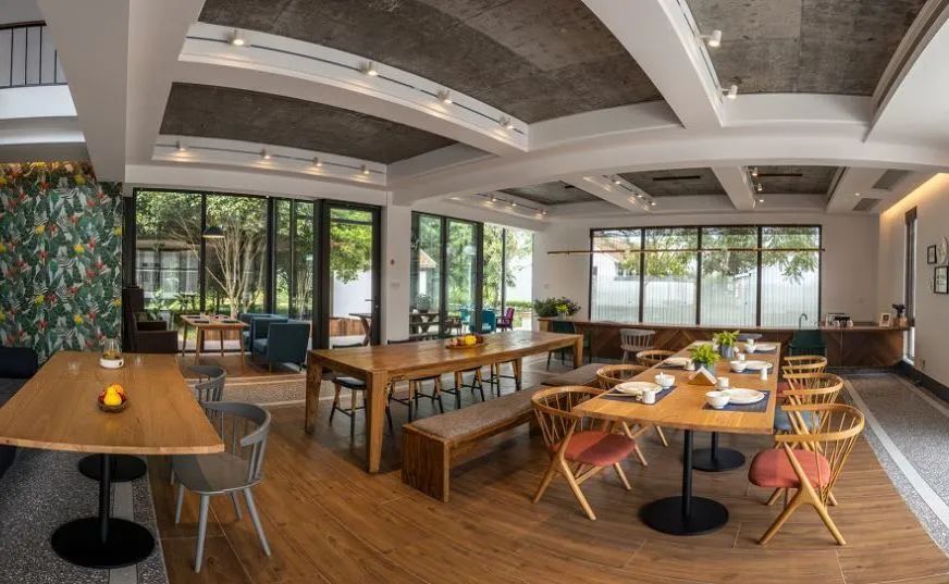 坐拥周边400亩树林。无处不散发着负离子的芬芳。由老屋改造的林舍,设计师希望中西融汇,新旧并存。保留了经历风雨的老瓦、还把村民拆迁留下的老物件与现代家具融合。岁月在林舍的花园中留下了印记,设计师、村民与民宿主人谱写着现代崇明的发展新曲。夏天在泳池边摆上长桌宴别有一番情趣,冬日在柴火炉前围炉夜话。柴薪、果蔬、林间的鸡与羊,都会让你感受乡野怀抱的笃定、放松与静谧。想脱离樊笼,吞吐着天地灵气,那就不妨在淳朴又不失精致的西岸氧吧,唱一出“归园田居”。