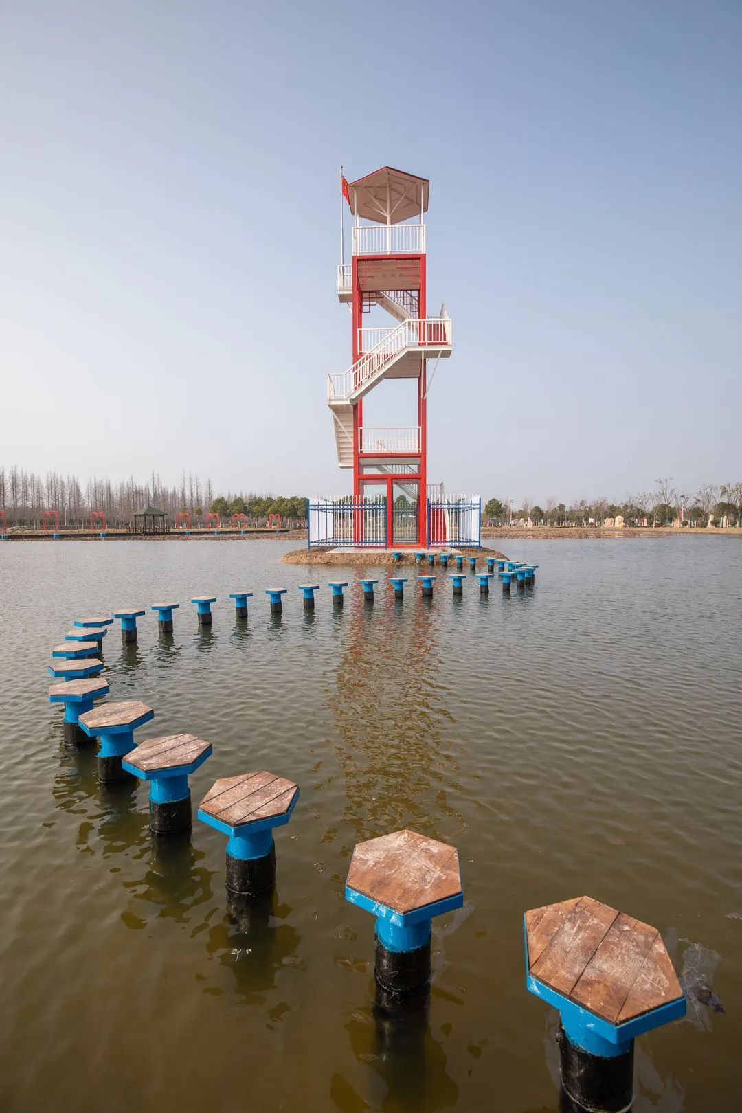 南菁湖滨公园,作为横沙的特色生态旅游景点,以南菁书院与横沙岛的陆域变迁为文化脉络,以蜿蜒曲折的人行园路为景观线路。呈现在人们眼前的是一派葱茏清新、绿树成荫的景象