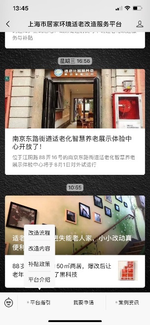 2、登录“上海市居家环境适老改造服务平台”微信公众号,点击“我要申请”,进入小程序进行申请。