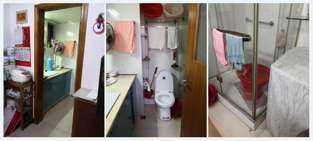 ④洗衣机在厕所门背后,门无法开直,空间狭小给护理造成极大不便。