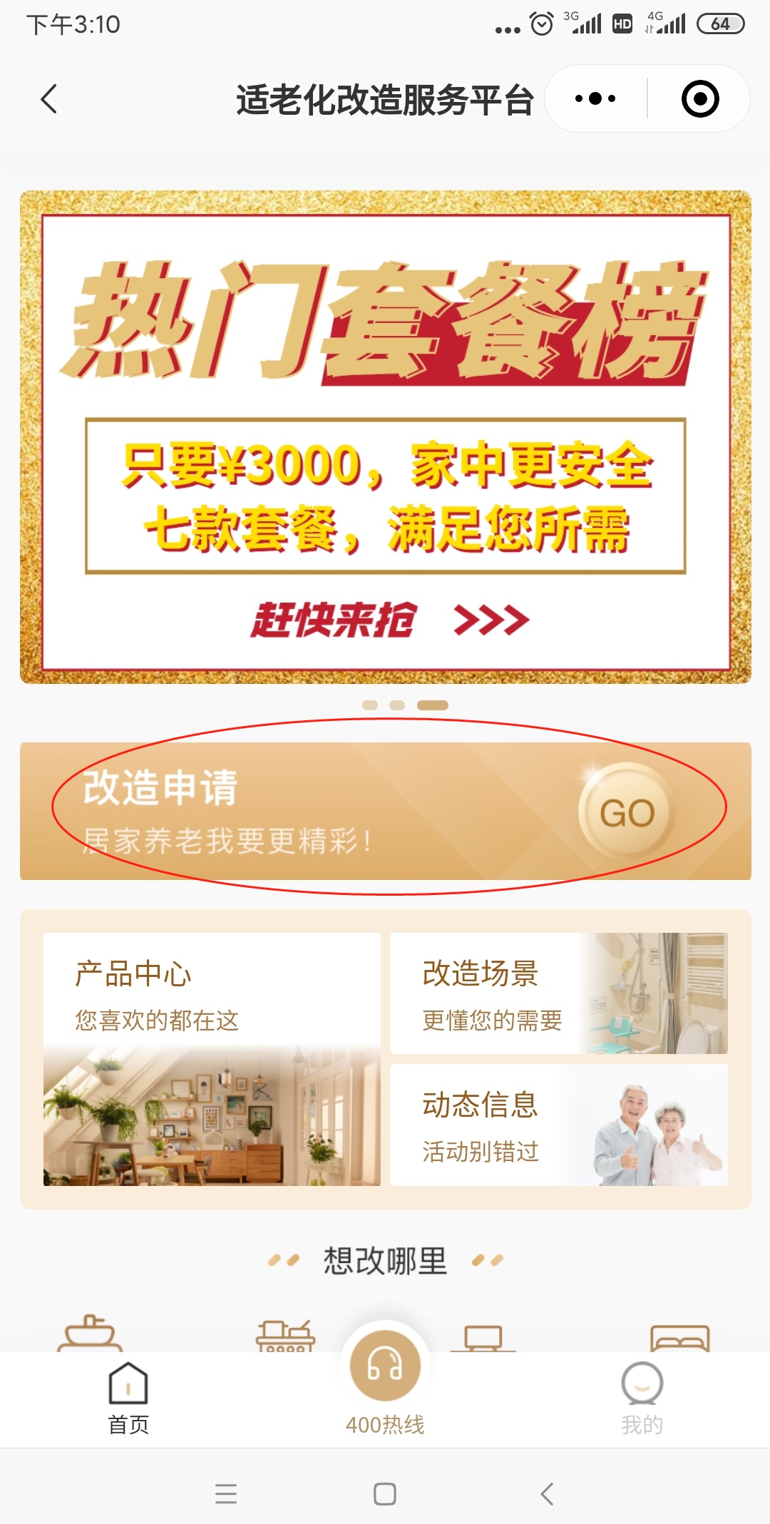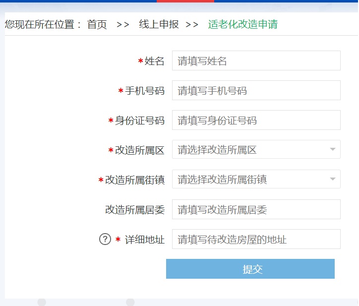 首页——办事指南——线上申报——适老化改造申请——“我要办理”