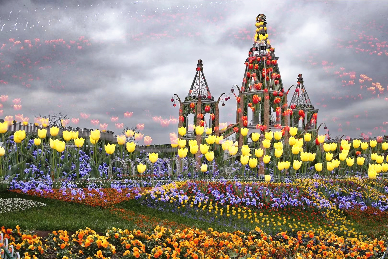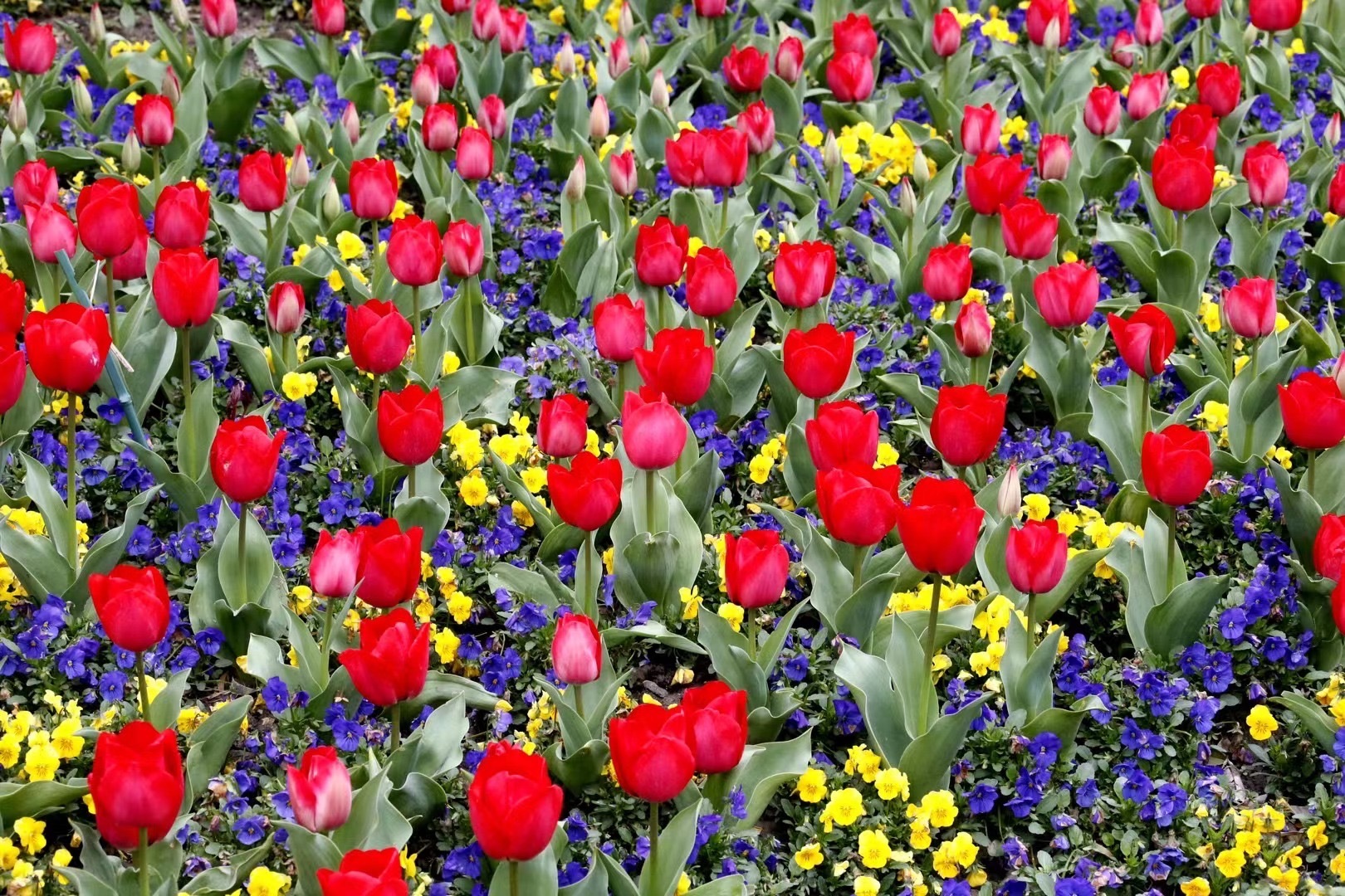 郁金香花期较短,一般从3月中旬到4月初即结束。之后至6月份,角堇、矮牵牛、洋凤仙、金鱼草等鲜花将悉数登场,花毯颜色将呈现粉红、粉蓝等柔和的色彩,数以万计的鲜花构成壮丽的“爱的许愿树”图案,祈福平安喜乐国泰民安。