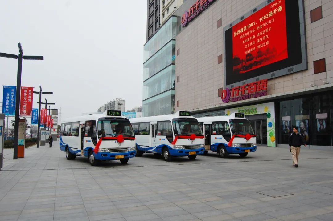 “1001路、1002路最开始的终点站都设在万达广场附近。开通当天,除了车头戴上了大红花,还有腰鼓队助兴,现场非常热闹。”汤龙明回忆起开通时的场景,还是记忆犹新。