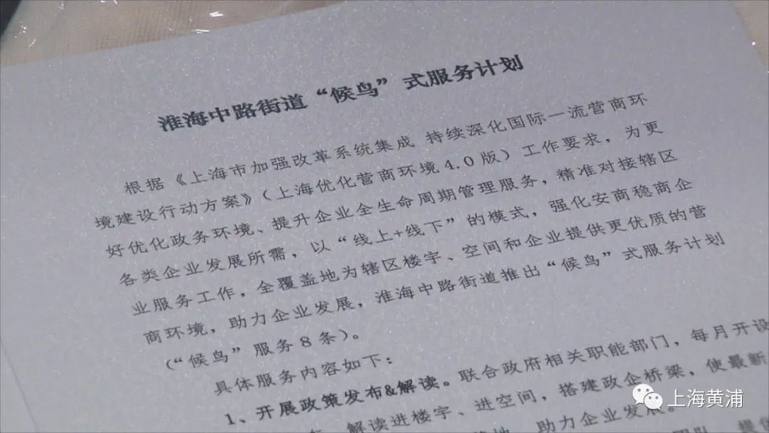 淮海中路街道占地约为全区的十分之一,但经济总量占全区四分之一;淮海中路街道作为党的诞生地所在街道,集中了淮海中路、新天地两大商圈,近年来,街道通过搭建重点企业家恳谈会、楼宇联席会议等一系列平台,亮点频现,成效突出。“候鸟”式服务计划由以往的“1.0场地赋能”向“2.0服务赋能”的升级,逐渐转入精细化的服务,是街道推进营商环境更新迭代的工作创新。