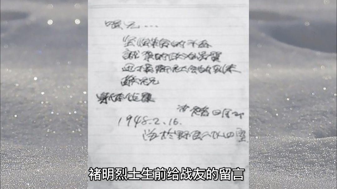 出院前,褚明给同在医院住院的营长周喔的笔记本上留下了这么一段话:“喔兄:坚强革命的斗志,诚实的政治品质,迎接新社会的到来。敬祝身体健康。弟褚明1948.2.16留于野医二队四室。”为了迎接新社会的到来,1949年5月,褚明在解放上海的战役中献出了自己年仅24岁的宝贵生命。