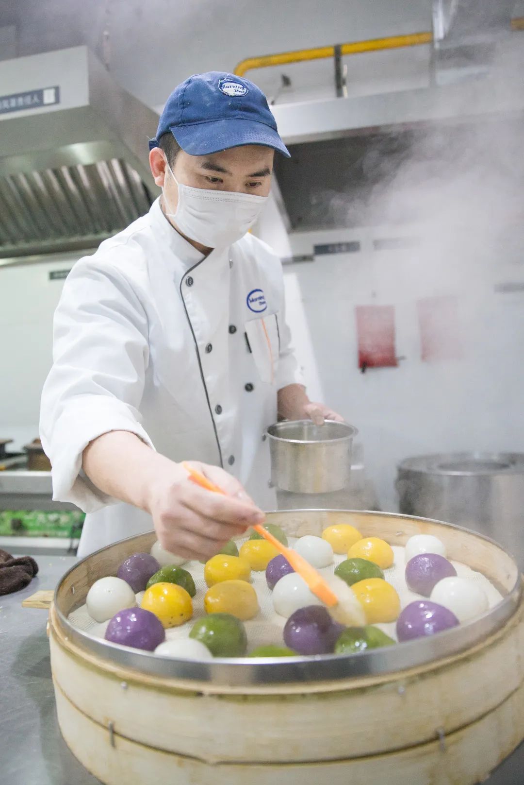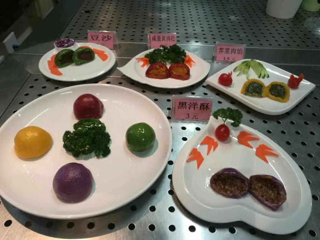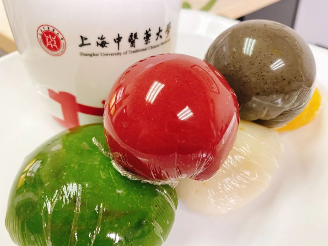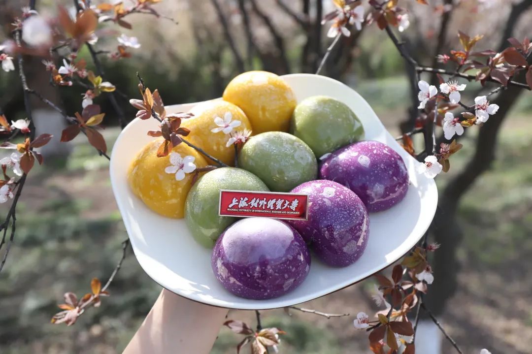 上海中医药大学学生食堂特别选用紫薯、麦青汁、胡萝卜、黑芝麻等食材,做成了五色青团。配以春季时令荠菜、春笋,推出了各色口味的青团。