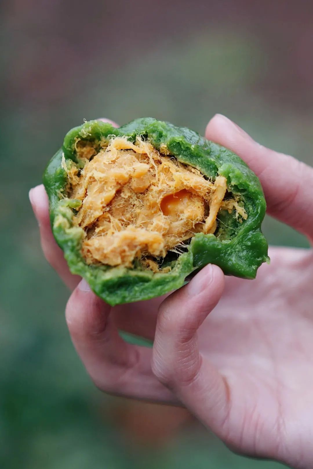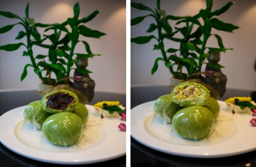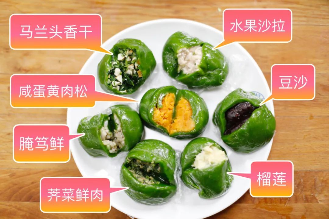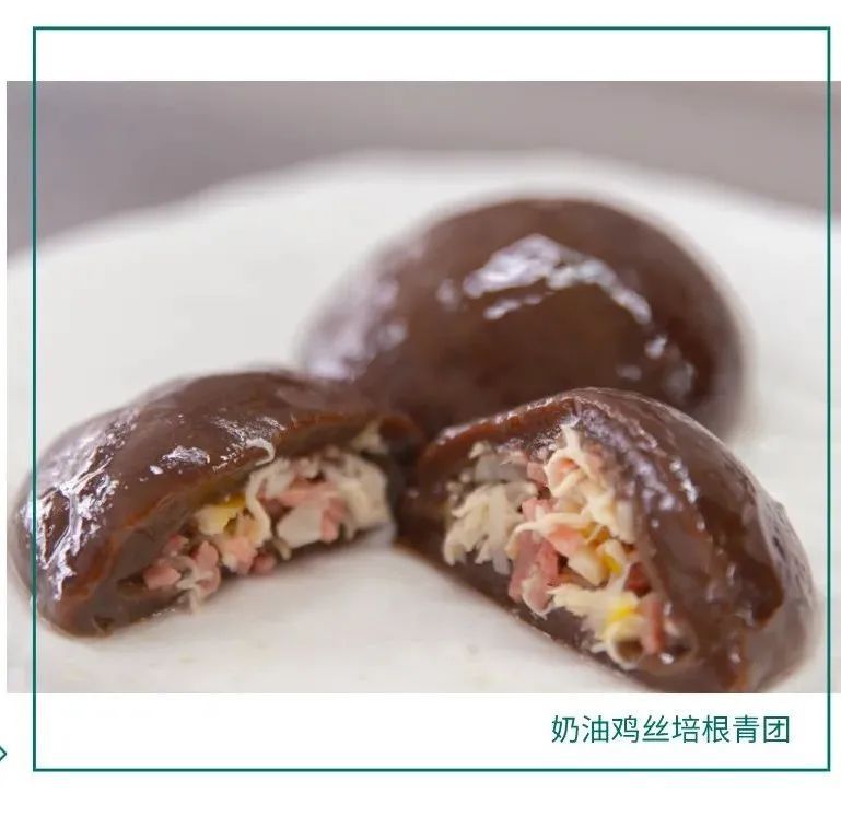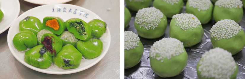 上海戏剧学院的青团有咸蛋黄肉松、豆沙、荠菜肉三种馅料。