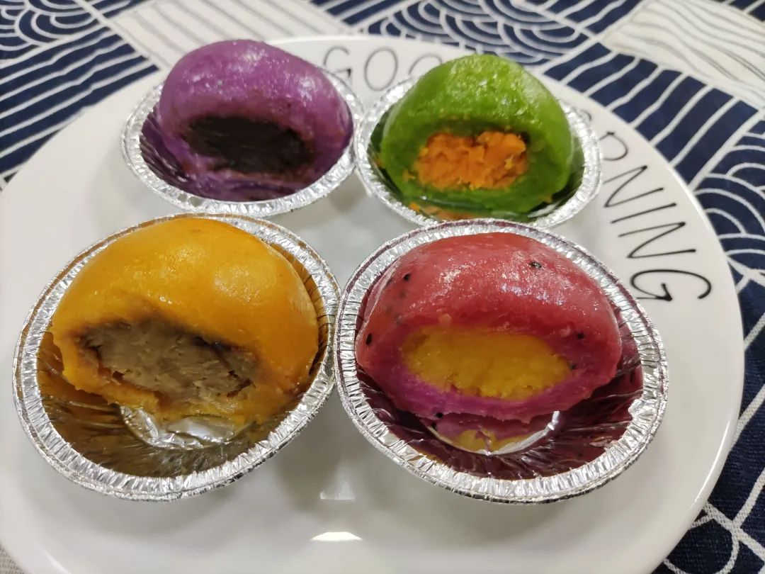 紫色:紫薯皮绿豆馅 4元/只