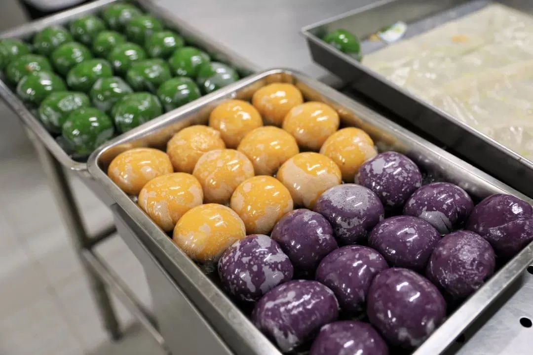今年,华东师大的青团除了有细腻浓厚的豆沙馅,怡人的黑芝麻馅,网红体质的蛋黄肉松馅,咸淡可口的荠菜鲜肉馅之外,后勤保障部膳食服务中心还特别开发了樱花团子、紫薯团子和南瓜团子,满足广大师生的不同口味和需求。