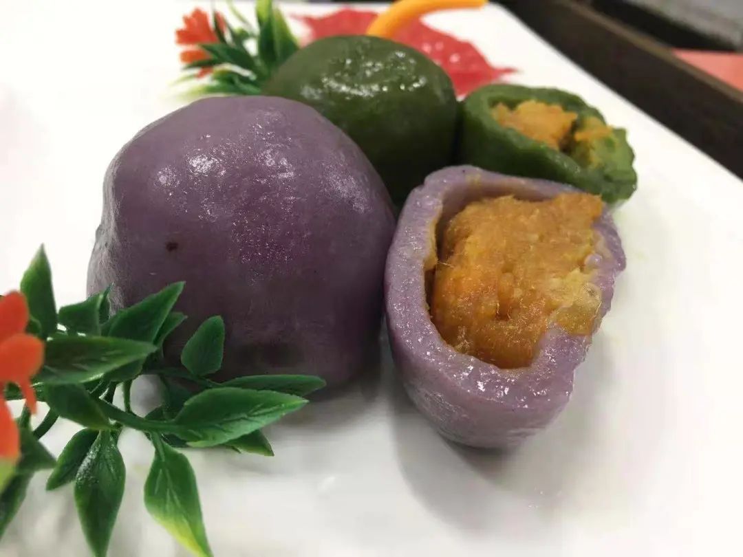 咸蛋黄肉松青团(紫薯馅皮)