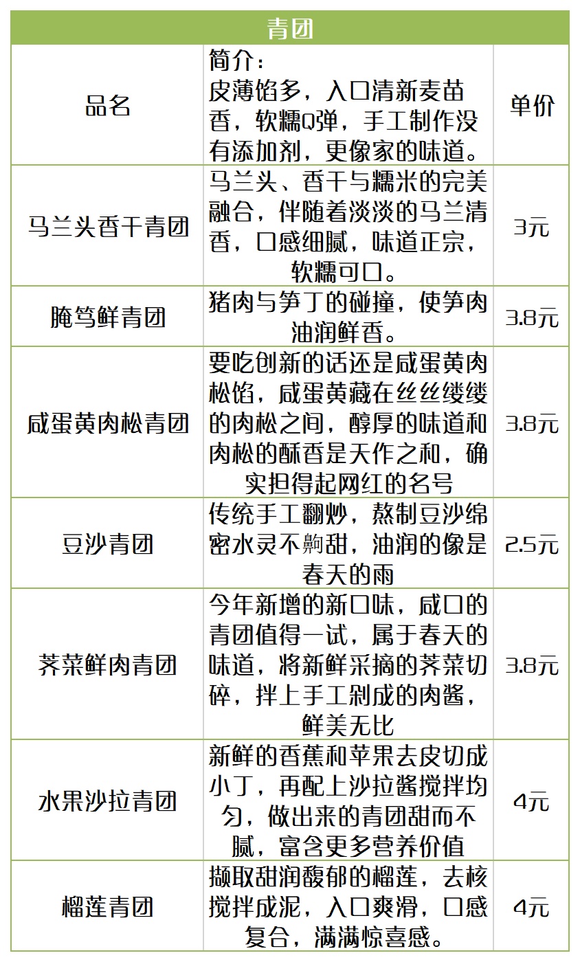 青团种类及价格: