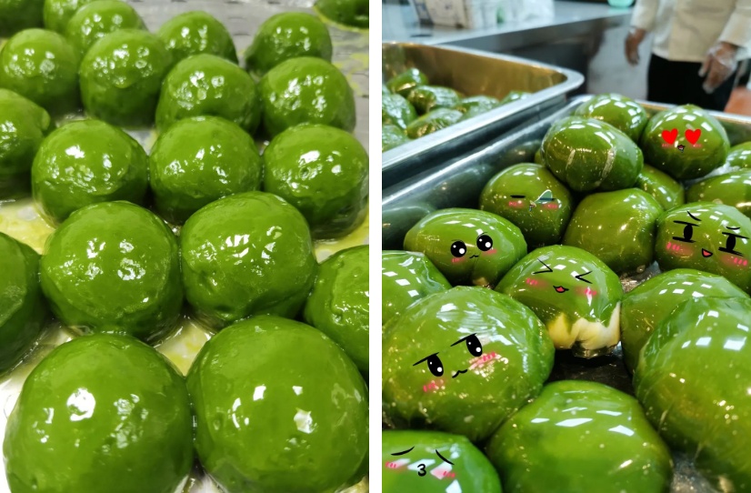 艾草萌芽,大地复苏,又到了青团季。今年,上海健康医学院食堂精心为师生准备了营养又美味的青团,有奶黄、竹笋鲜肉炒蛋、豆沙和咸蛋黄肉松四种口味。
