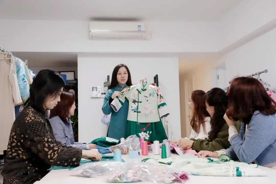 画设计图、采购布料针线、划样裁剪、缝纫刺绣、手作盘扣……每一步她都反复琢磨,做出来的成品一件比一件好看,涵盖了汉服裙、清末民初的袄裙、古法旗袍、海派旗袍、绣花棉衣等诸多种类。
