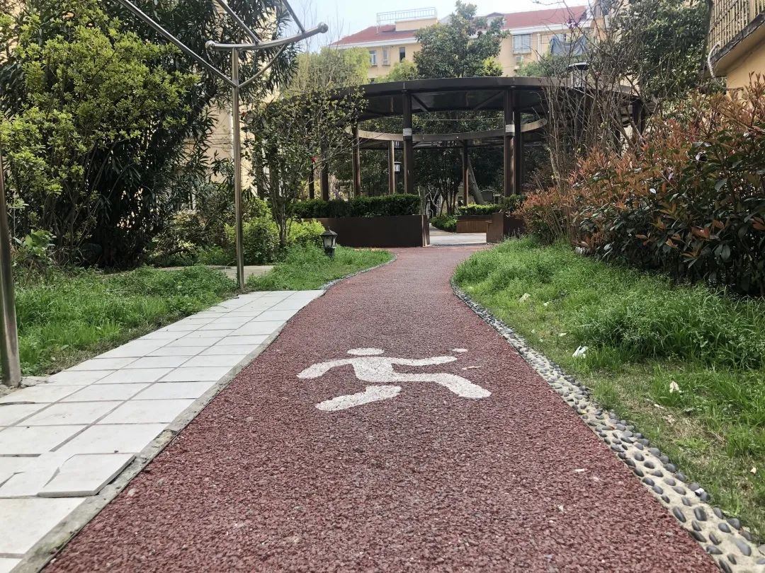 最终,一条近千米的环形步道呈于眼前,和小区整体健康跑道相连,居民行走锻炼,再也不用跟汽车“抢路”了。