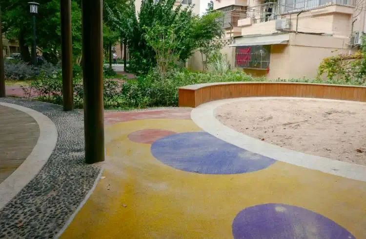 作为一个“老旧小区”,这里有不少“上了年纪”的大树,早已成为一代居民的生活记忆。设计师梁洁对花园内的每一株大树、每一块活动场地都进行标注,在保护原有植被基础上进行环境提升,并规划儿童科普体验小树林,在社区形成寓教于乐的氛围。