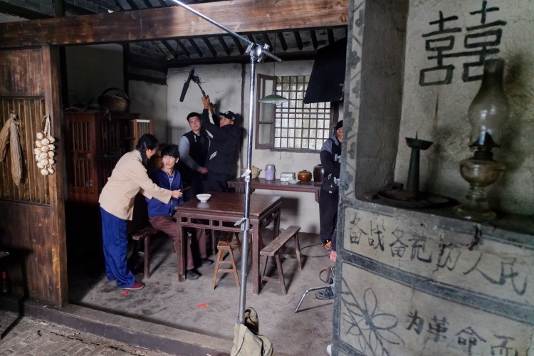 本剧导演梁山介绍,3月15日下午拍摄的戏份,时代背景为上世纪70年代,这也是本剧时间线索的起点。取景地是蒋桥村里一座拥有100多年历史的农宅,作为主角一家的童年住所。门上贴着的“春风杨柳万千条,六亿神州尽舜尧”的诗句,以及墙上随处可见的红色宣传画,真实还原那个热火朝天的年代。
