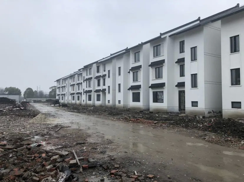 白墙黛瓦,古色古香的设计,作为朱泾镇首个农民集中居住项目,待泾村农民集中居住点共40户房屋建设已经全部结束。
