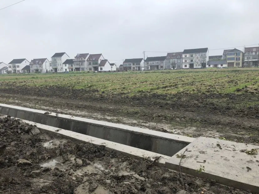 原来农田中间浅浅的小土沟,经过改造后,变成又深又宽的水泥排水渠。
