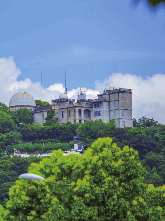 到山顶时,映人眼帘的是高大的天主教堂,与之相对的是我国天文研究中心之一——佘山天文台,其规模仅次于南京紫金山天文台。