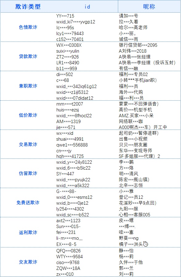 2021年1月截至3月,在核实用户投诉提交的证据后,微信安全中心共计对84598个欺诈类恶意帐号进行了阶梯式处罚,其中: