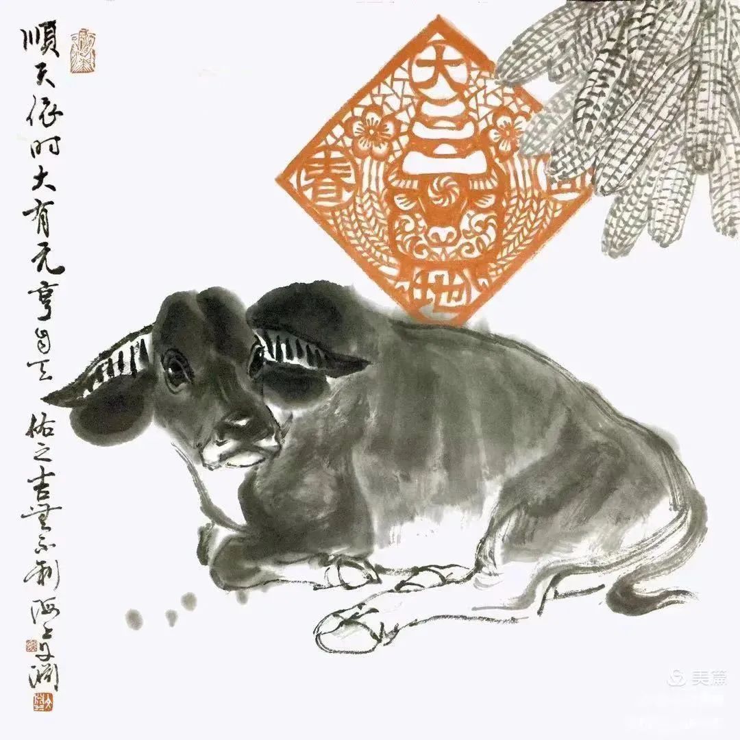 牛象征着脚踏实地,拼搏实干。征途漫漫,惟有奋斗。齐心协力的“中国牛”定能书写绚丽的“中国红”。