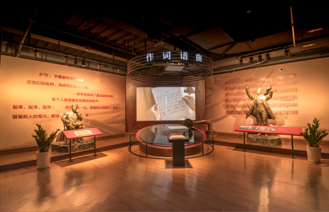 国歌展示馆建筑面积1450平方米,以国歌故事为主线,演绎了《义勇军进行曲》逐步成为中华人民共和国国歌的历程。