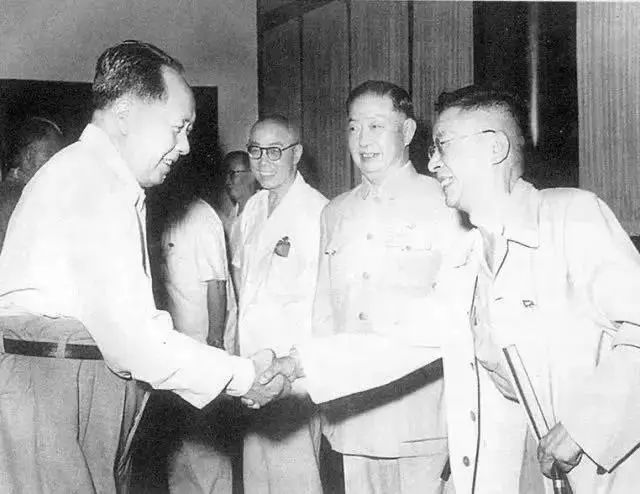 1960年7月,第三次文代会期间,毛泽东(左一)接见田汉(右三)、梅兰芳(右二)、老舍(右一)