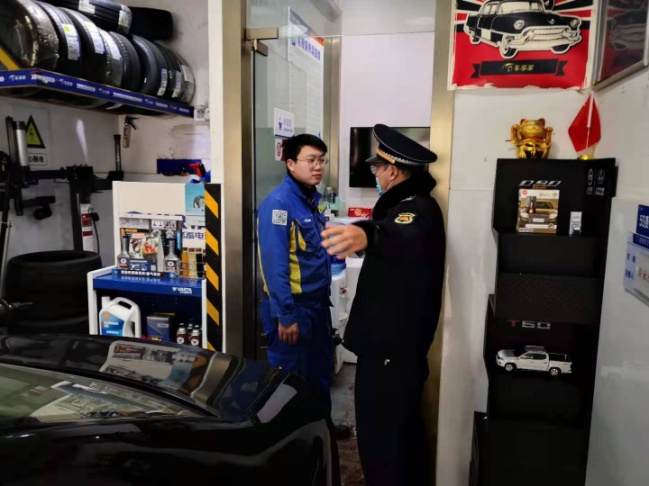 旅顺路某家汽修美容店,因为没有采取任何遮挡措施,工作人员洗车时,水枪从车身上冲下来的泡沫和污水直接流淌至人行道上,整个路面都是湿漉漉的。执法队员当即对该经营性车辆违规清洗的行为拍摄取证,在教育劝导并告知相关法律条文后,经营者这才意识到要完善店内排水设施。