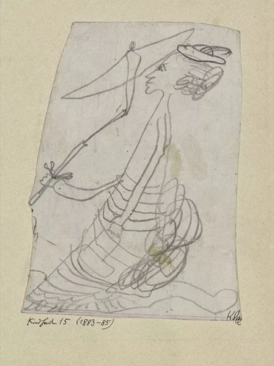 22 岁那年,克利与雕塑家赫拉一同赴意大利考察文艺复兴艺术,回到家乡后,偶然翻出幼年时期的一些绘画,其中包括这幅 4 岁时完成的速写,他自我评价道:“它们是我至今最出色的作品。”