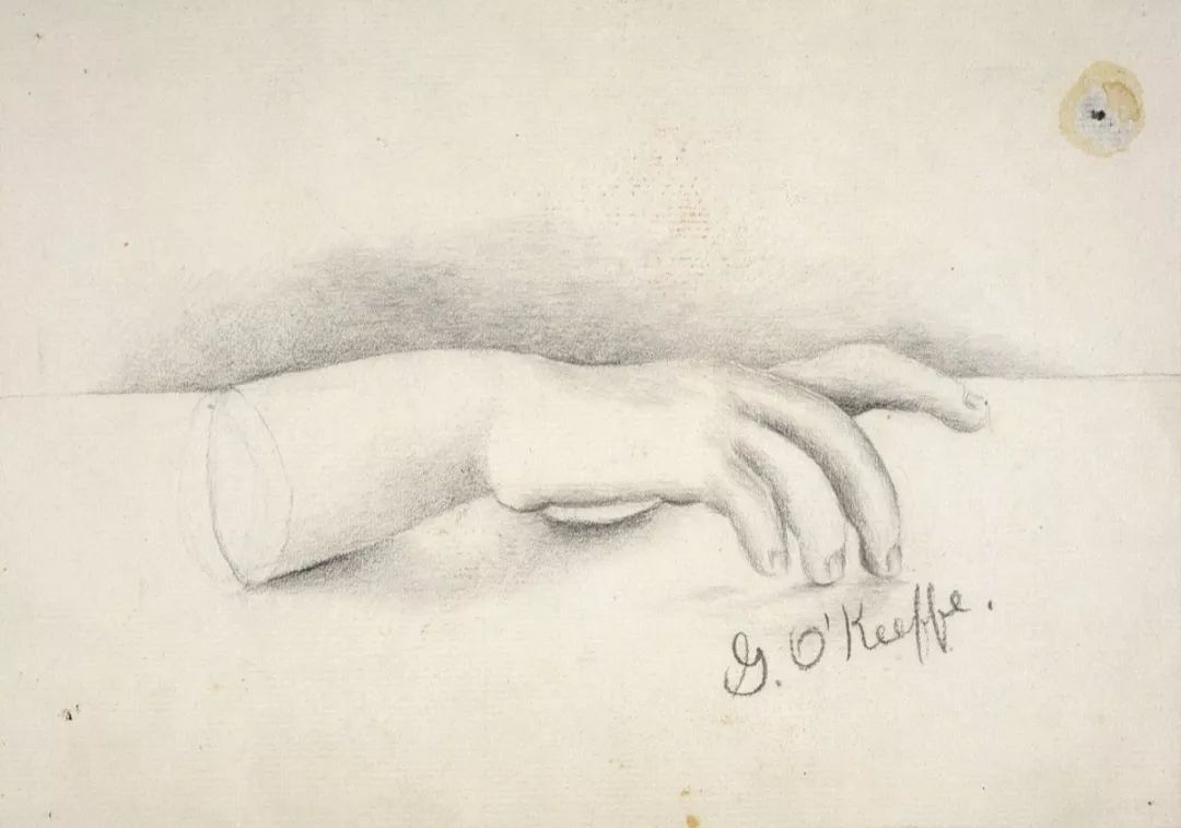 而 14 岁完成的这幅素描画,已具备欧姬芙的独特气质。