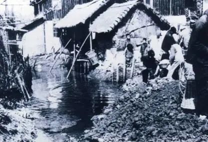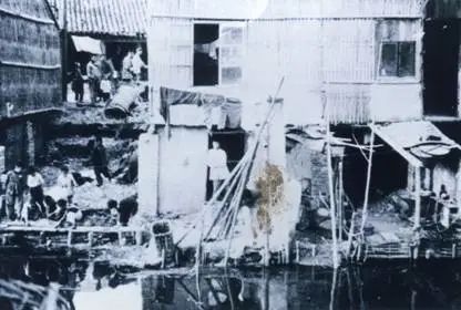 ▲中华人民共和国成立前工人居住的窝棚