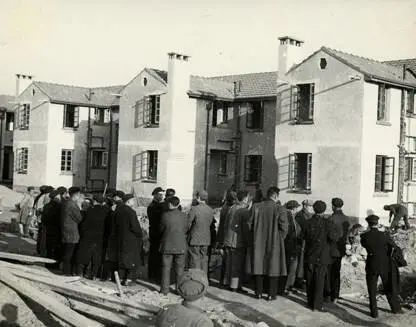 而这时的“二万户”建筑工地上则是一幅热火朝天的场面,1.3万余名建设者为了尽早实现上海广大工人“居者有其屋”的愿望,正挥汗如雨,夜以继日地工作着。在这些建设者当中还出现了人民子弟兵的身影。1952年9月,中国人民解放军建筑五师、六师2万多官兵集体转业后,在上海集结,归属华东军政委员会建筑工业部指挥。因而,筑造“二万户”成为这批解放军指战员在地方建设中打的“第一仗”。几乎就是在顾巧娣闻得喜讯的时候,成排的“二万户”已从昔日的遍地野草、水洼的荒地上崛起。