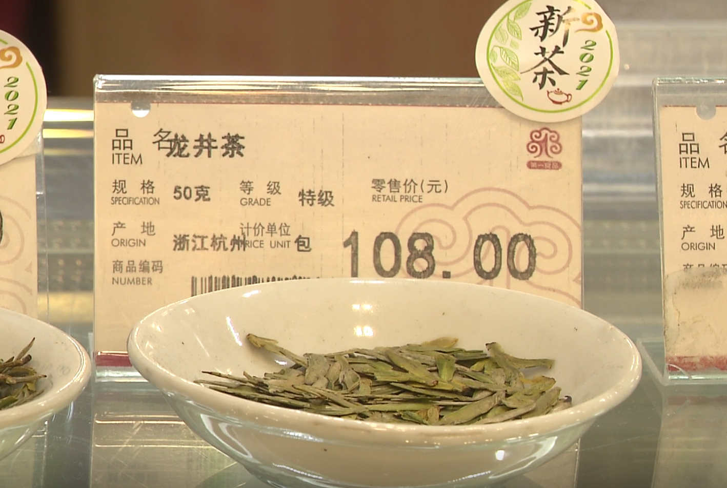 据淮海店店长张健介绍,今年气温适合,雨水充足,虽然西湖龙井采摘上来的含水量比较多,但产量和质量比去年都要高一些。