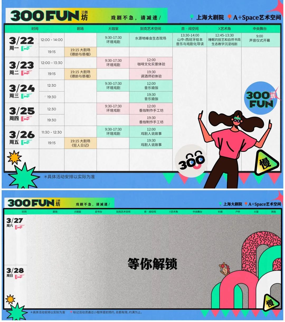 3月26日,『同好生活节』无戏剧,不生活——睛彩SHOW正式开幕,截止到5月9日、音乐会、剧组见面会、话剧、即兴戏剧、剧本朗读、高校音乐剧展演、戏剧体验工作坊……等一系列戏剧活动和演出将在五角场大学路不定期开展。