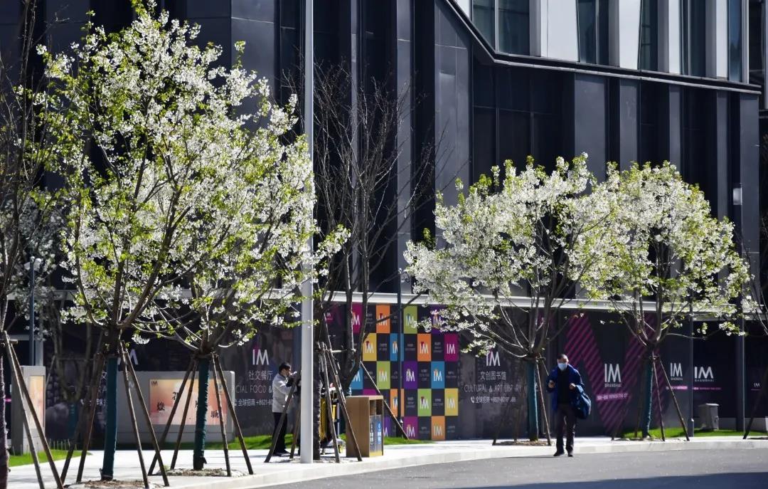 在规划设计的时候,IM Shanghai长宁国际的景观设计团队就根据项目特性,将凯田路设计成“樱花大道”。一方面是出于提升项目本身的绿化品质需求,希望呈现出一个更好的绿化环境;另一方面IM Shanghai长宁国际将围绕凯田路打造一条以美食为主的商业街,希望在项目开业后,能够让商户、顾客、樱花树之间形成一道独特的风景,成为长宁乃至上海的一个网红打卡处,让人与樱花树融入到项目的整体环境中,勾勒出一幅具有独特美感的生活画面。
