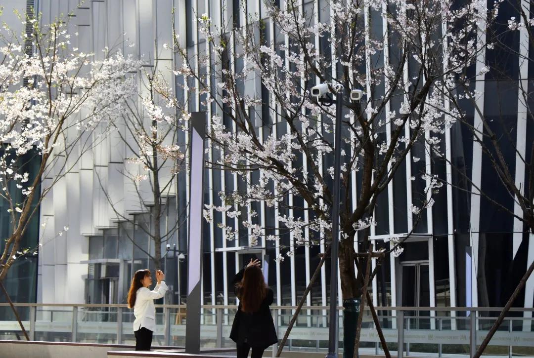 “宁宁”近日路过即将开业的IM Shanghai长宁国际,发现新辟的凯田路两侧的樱花开了!这也是樱花第一次在这里绽放哦~