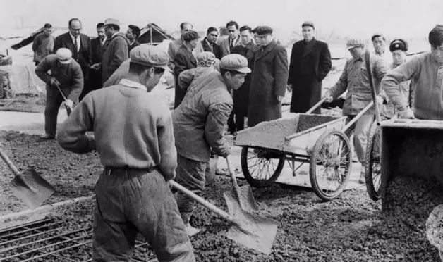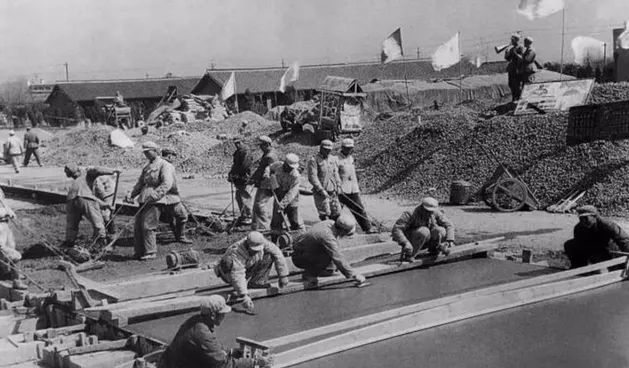 而在那个年代,除了那种老式混凝土搅拌机和提在手里的震荡器、风镐、手推车,几乎没有什么机械化电气化的工具。修建虹桥跑道,就像手工“做豆腐”,先把要浇铸的跑道地基分割成一个个边长3米的正方形空间,再用木板围上并固定好,一辆接一辆的翻斗小车把混凝土倒进设定的空间。负责“做豆腐”的战士就用手工工具把倒入的混凝土在钢筋间扒开、推平,用手持震荡器震实。