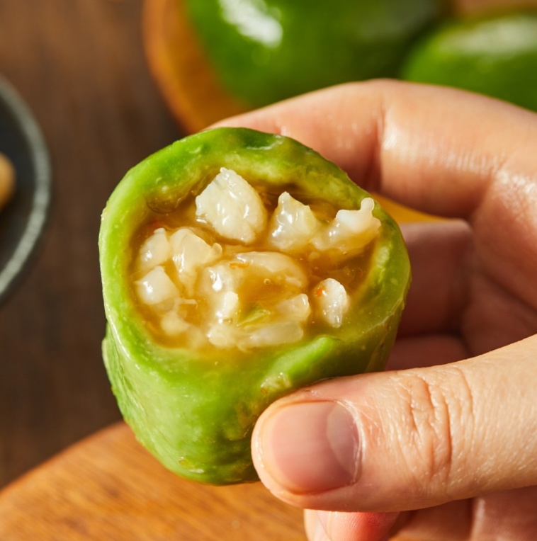 这一次,盒马把冷菜做成馅料,包进了青团里。清新自然的麦苗汁融入饼皮,翠绿透亮的颜色令人胃口大开,咬下一口,滴滴酱汁入味十足,去骨凤爪筋皮完整、酸辣爽口,加上清新的柠檬味,有些许东南亚风味。