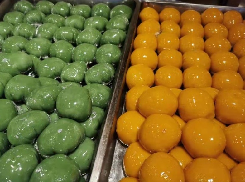 与榴莲汤团同为宁波汤团店内“榴莲系列”的榴莲青团,今年将继续销售,而除此之外,店内还有一款金黄色外皮的榴莲“金团”。