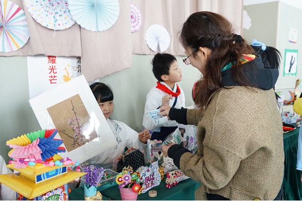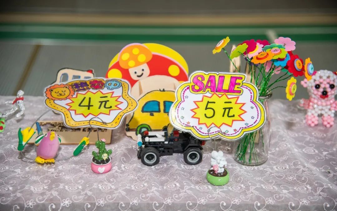 图中的这些义卖品都是小朋友们手工制作的哦~