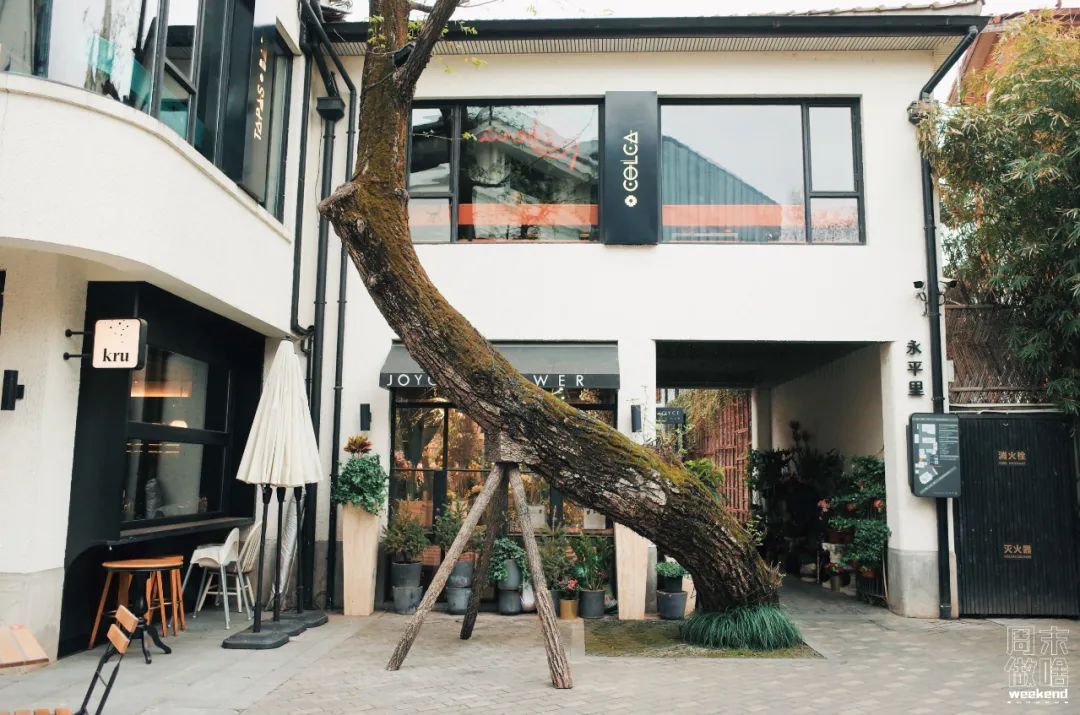 如今的陕康里,火爆程度肉眼可见。网红店一家接一家地入驻,优美的街区让人仿佛穿越到欧洲,光是FUMI咖啡馆的极简白色招牌就已经刷屏全网。