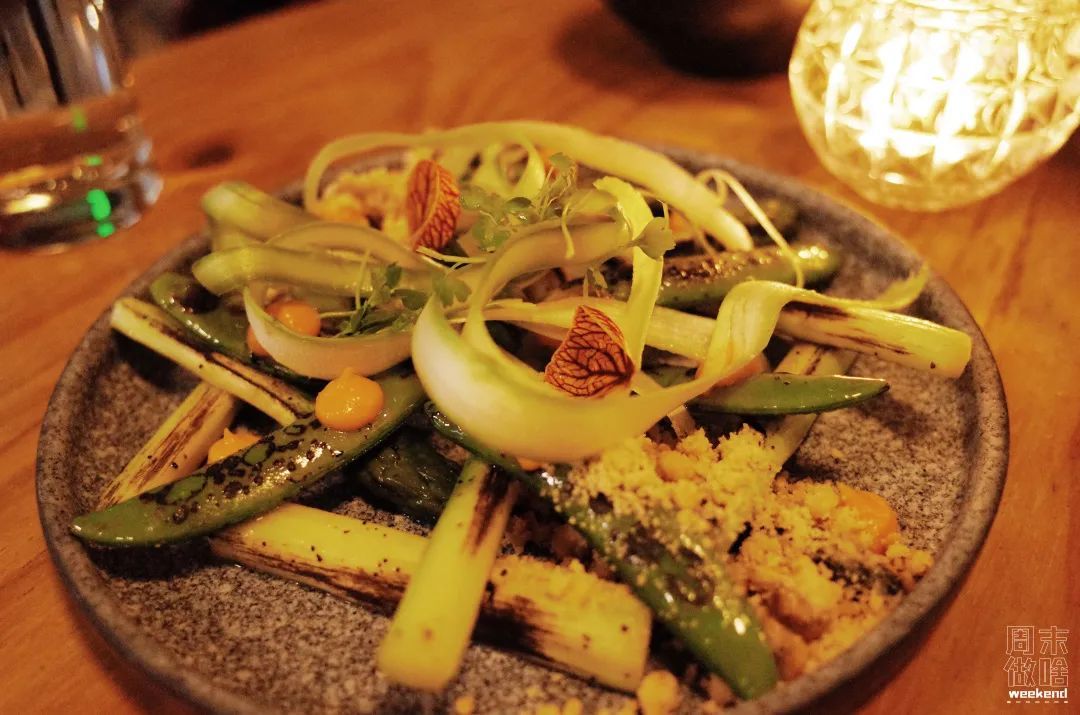 炙烧芦竹笋甜豆,集清甜、奶香、多汁、咸香于一身,整体很解腻,确实是有颜值又有实力。