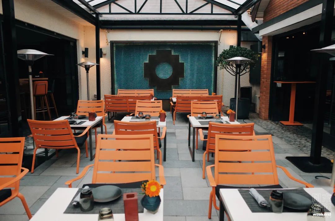 拾级而上到达二楼露台,就能看到秘鲁西班牙餐厅Colca。第一印象是缤纷亮丽的色彩,桌椅、吧台、灯光,无不给人一种南欧的热情氛围。